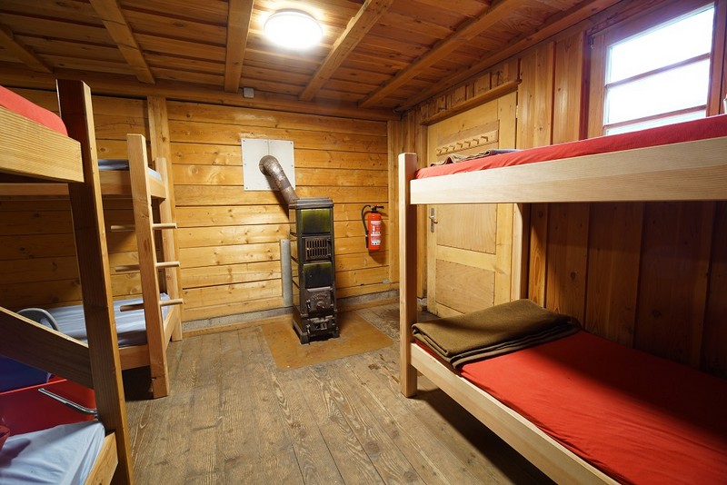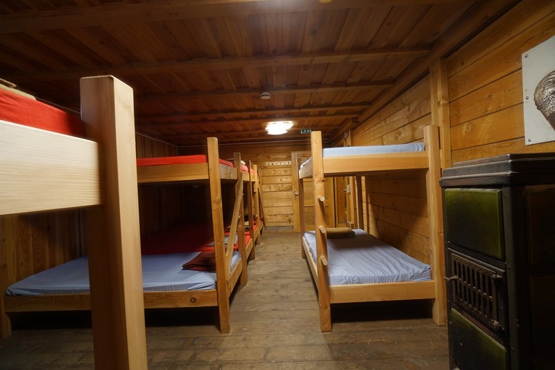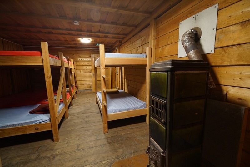 Schlafraum: Stockbetten für 12 Personen inkl. Matratzen, Ofen.